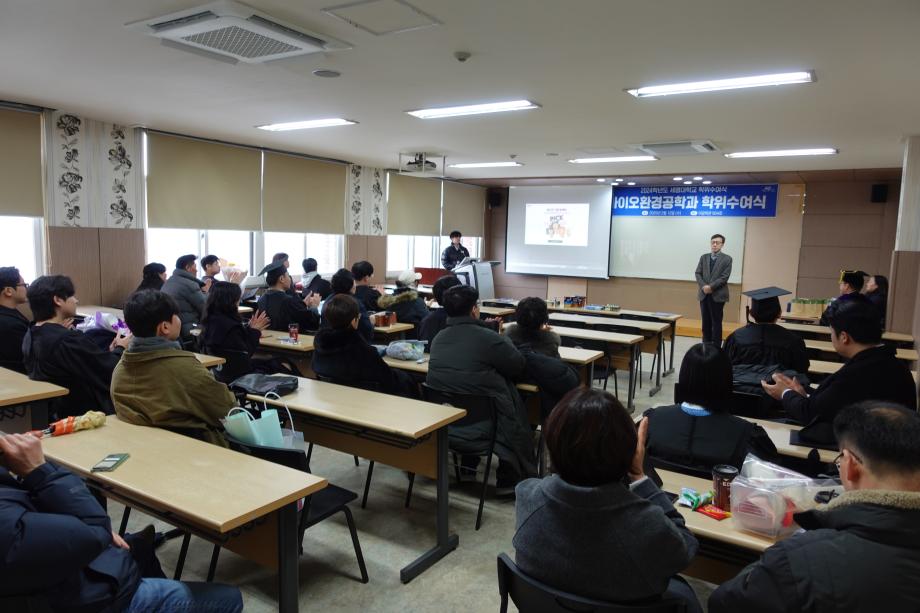 본문 시작 홈으로 커뮤니티 학과소개 교수소개 학과과정 커뮤니티 홈페이지가이드 학과활동 및 행사 학과공지 채용정보 학과활동 및 행사 전공자료실 동아리 학과활동 및 행사 페이스북 트위터 프린트 2024학년도 바이오환경공학과 27회 졸업식 거행 환경에너지학과 1388 2025-02-12 세명대학교 바이오환경공학과는 2월 12일 오전 11시에 이공학관 504호실에서 2024학년도 졸업식을 거행하였습니다(27회) 이번에 30명의 졸업생이 배출되어 누적 819명의 졸업생이 배출되었습니다. 졸업생 모두 앞날에 행운과 발전이 가득하기 바랍니다. 목록 이전세명대학교 2025학년도 정시모집[나군/다군] 주요사항 안내 다음 2025-1학기 학과 개강 총회 진행 담당부서 : 환경에너지학과 담당자 : - 연락처 : 043-649-1337 최종수정일 : 2024-10-26 만족도조사 만족도 조사 이 페이지에서 제공하는 정보에 대하여 만족하시나요? 매우만족 만족 보통 불만족 매우불만족