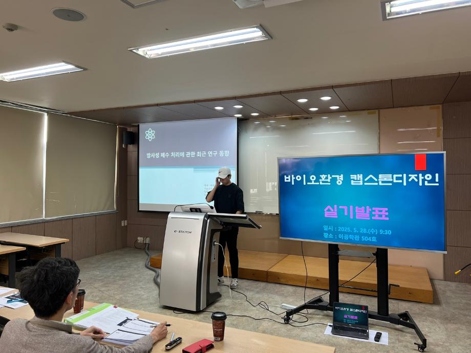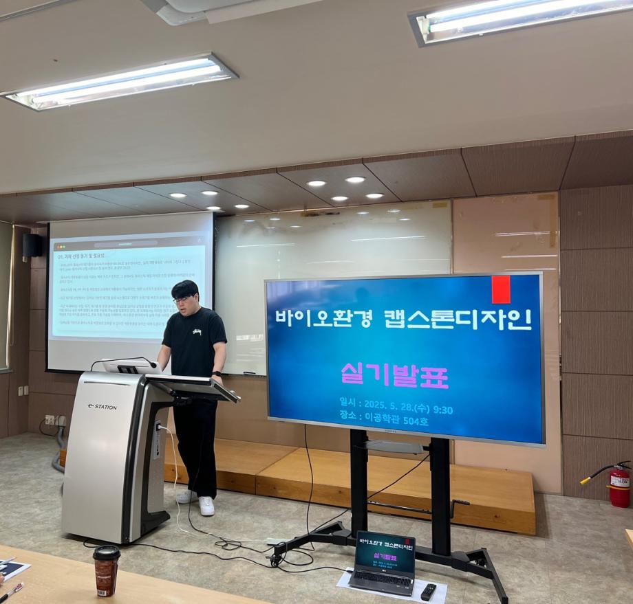 본문 시작 홈으로 커뮤니티 학과소개 교수소개 학과과정 커뮤니티 홈페이지가이드 학과활동 및 행사 학과공지 채용정보 학과활동 및 행사 전공자료실 동아리 학과활동 및 행사 페이스북 트위터 프린트 2025학년도 바이오환경공학과(환경에너지학과) 캡스톤디자인 최종발표회 개최 환경에너지학과 826 2025-05-28 4학년 졸업논문과 연계한 '바이오환경캡스톤디자인' 최종 발표회가 개최되었습니다. 1. 일시 : 2025.05.28.(수). 9:30 2. 장소 : 이공학관 504호 학과 지도교수님의 지도로 총 2개팀의 발표와 질의응답이 있었습니다. 발표의 주제는 다음과 같습니다. 1) 방사성 폐수 처리에 관한 최근 연구 동향 (지도교수 : 최석순) 2) 국내 환경분야의 딥러닝 기법 적용 사례조사 (지도교수 : 윤석표) 한 학기 동안 졸업논문 발표 준비한 4학년 학생들과 지도교수님 모두 수고 많으셨습니다. 목록 이전환경에너지학과/재난안전학과 단체 봉사 실시 다음 바이오환경실무체험 학술특강 1차 실시 담당부서 : 환경에너지학과 담당자 : - 연락처 : 043-649-1337 최종수정일 : 2024-10-26 만족도조사 만족도 조사 이 페이지에서 제공하는 정보에 대하여 만족하시나요? 매우만족 만족 보통 불만족 매우불만족