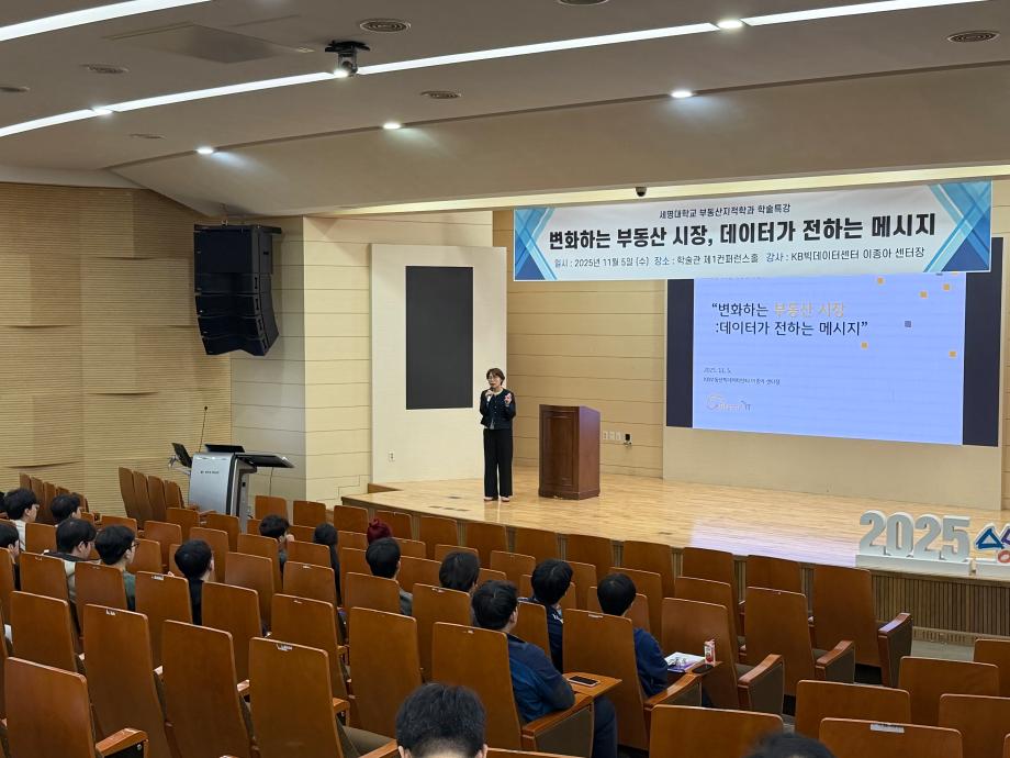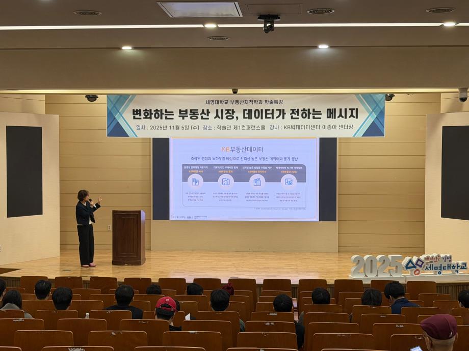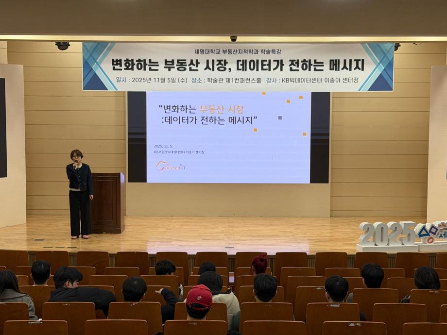 부동산지적학과에서는 KB국민은행 KB부동산빅데이터센터 이종아 센터장님을 모시고「변화하는 부동산 시장, 데이터가 전하는 메시지」라는 주제로 학술특강을 진행하였습니다