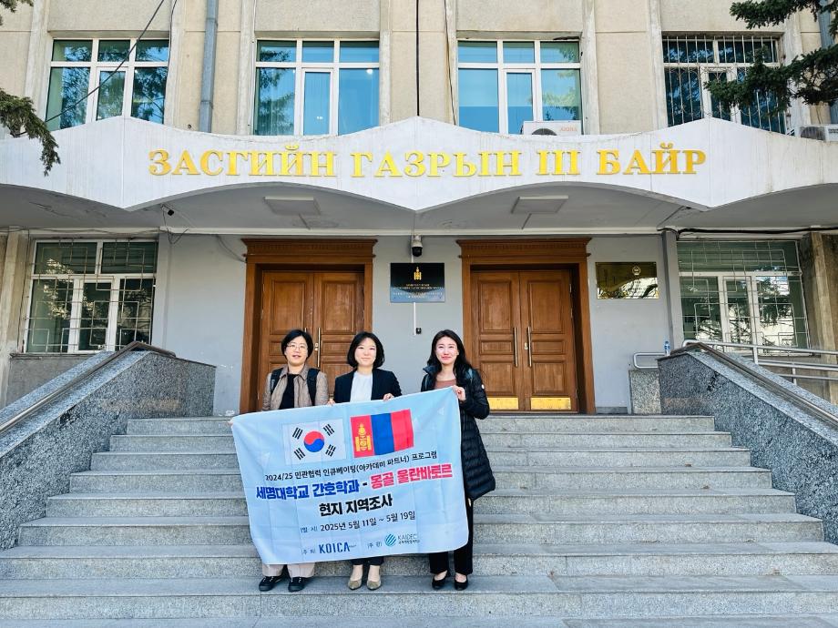 세명대학교 간호학과(참여 박다혜·황선아·서예지 교수)가 한국국제협력단(KOICA)이 주최하고 국제개발협력학회(KAIDEC)가 주관하는 2024/2025 KOICA 민관협력 인큐베이팅 프로그램(아카데미 파트너)의 지원기관으로 선정되어, 2025년 5월 11일~19일 몽골 울란바토르 현지 지역조사를 성공적으로 진행하였다.