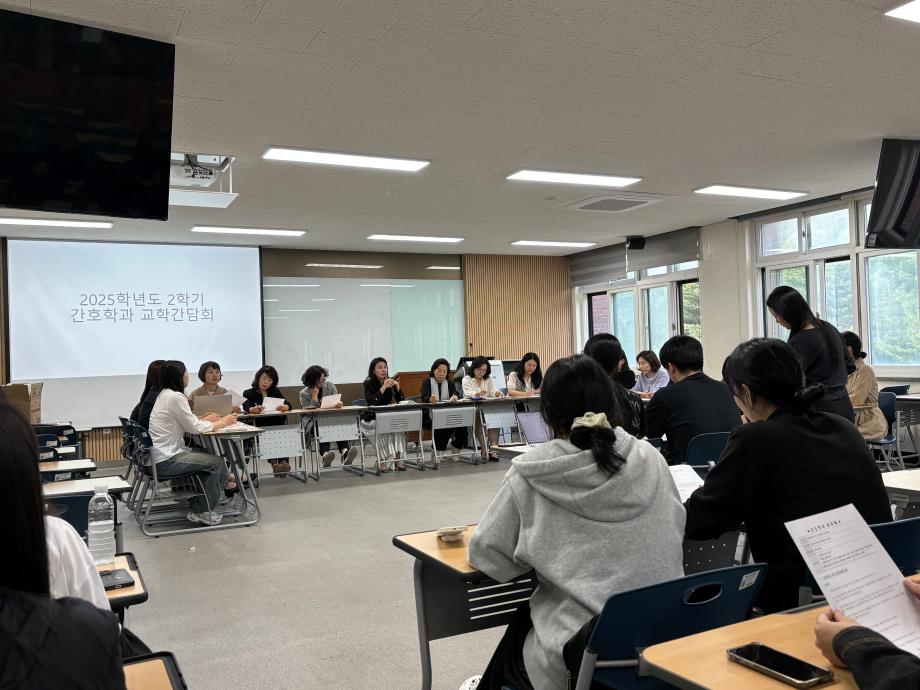 본문 시작 홈으로 커뮤니티 학과소개 교수소개 교육과정 학과소식 학과특성화 사업 커뮤니티 홈페이지가이드 포토갤러리 학사일정 포토갤러리 학생회 학과동아리 학과 취업정보 동창회 학과운영개선의견 발전기금 포토갤러리 페이스북 트위터 프린트 2025년 2학기 간호학과 교학간담회 간호학과 923 2025-09-24 세명대학교 간호학과에서는 교수님들, 학회(학생회), 행정실이 한자리에 모여 학과 운영에 대한 다양한 의견을 나누는 '간호학과 교학간담회'를 진행했습니다. 학생들의 목소리를 직접 듣고, 교수님과 행정실이 함께 고민하며 더 나은 교육환경과 학과 문화를 만들기 위한 뜻깊은 소통의 시간이었습니다.✨ 앞으로도 ‘함께 만들어가는 간호학과’를 위해 소통과 협력을 이어가겠습니다! 목록 이전🎉 세명대학교 간호학과 30주년 기념행사 🎉 Nursing Bridge: 간호, 세대를 잇다 다음 의림여중 전공체험 담당부서 : 간호학과 담당자 : - 연락처 : 043-649-1357 최종수정일 : 2024-10-26 만족도조사 만족도 조사 이 페이지에서 제공하는 정보에 대하여 만족하시나요? 매우만족 만족 보통 불만족 매우불만족
