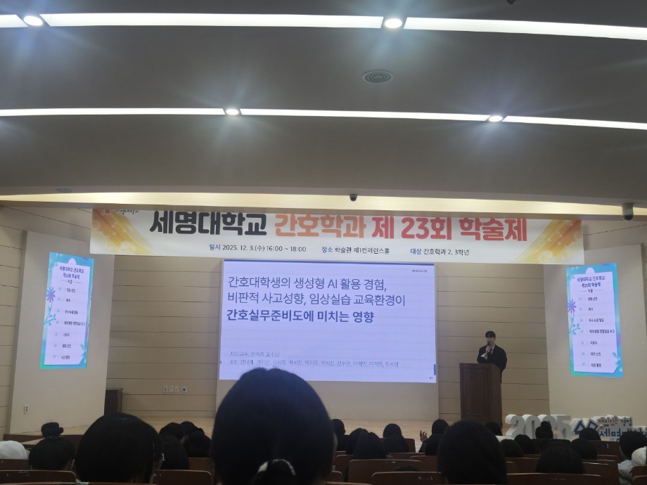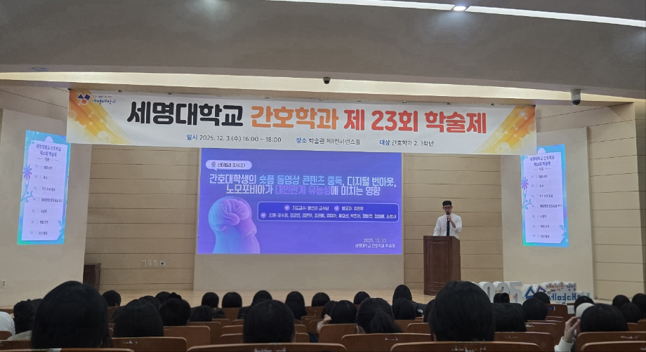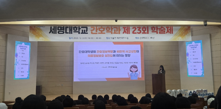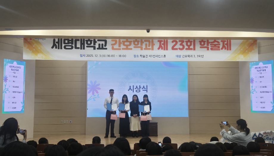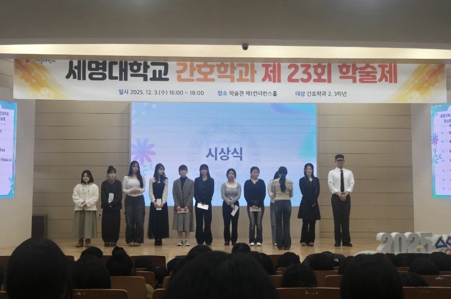 본문 시작 홈으로 커뮤니티 학과소개 교수소개 교육과정 학과소식 학과특성화 사업 커뮤니티 홈페이지가이드 포토갤러리 학사일정 포토갤러리 학생회 학과동아리 학과 취업정보 동창회 학과운영개선의견 발전기금 포토갤러리 페이스북 트위터 프린트 제 23회 간호학과 학술제 간호학과 592 2025-12-08 12/3 진행된 📝 2024 학술제 발표와 ✈ 해외 인턴십 경험 공유 후기가 학과 블로그에 업로드되었습니다. 발표 현장과 생생한 경험담이 궁금하다면 아래 링크를 확인해주세요 👇 🔗 링크 https://blog.naver.com/nursing_smu_official/224099825798 목록 이전📍 ‘임상실습 안전사고 ZERO를 위하여’ 특강 담당부서 : 간호학과 담당자 : - 연락처 : 043-649-1357 최종수정일 : 2024-10-26 만족도조사 만족도 조사 이 페이지에서 제공하는 정보에 대하여 만족하시나요? 매우만족 만족 보통 불만족 매우불만족