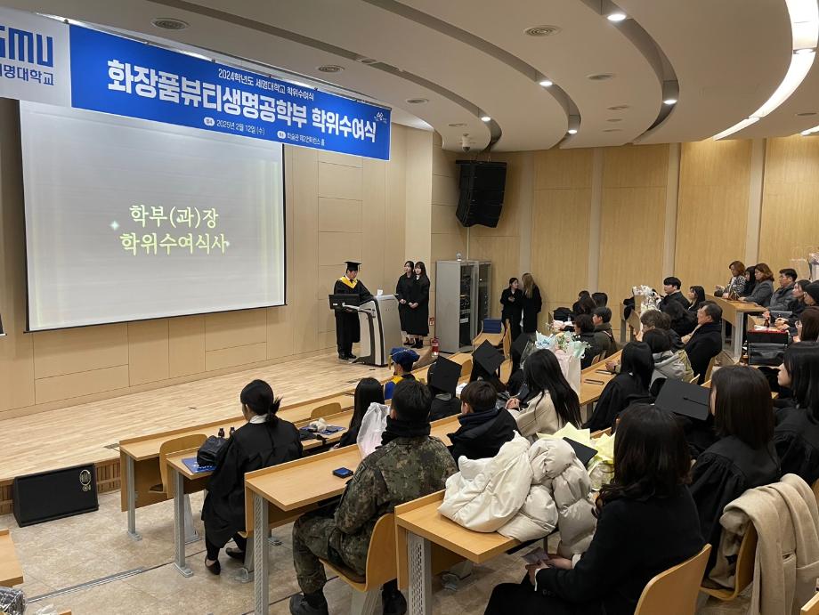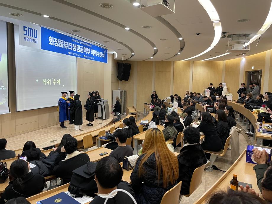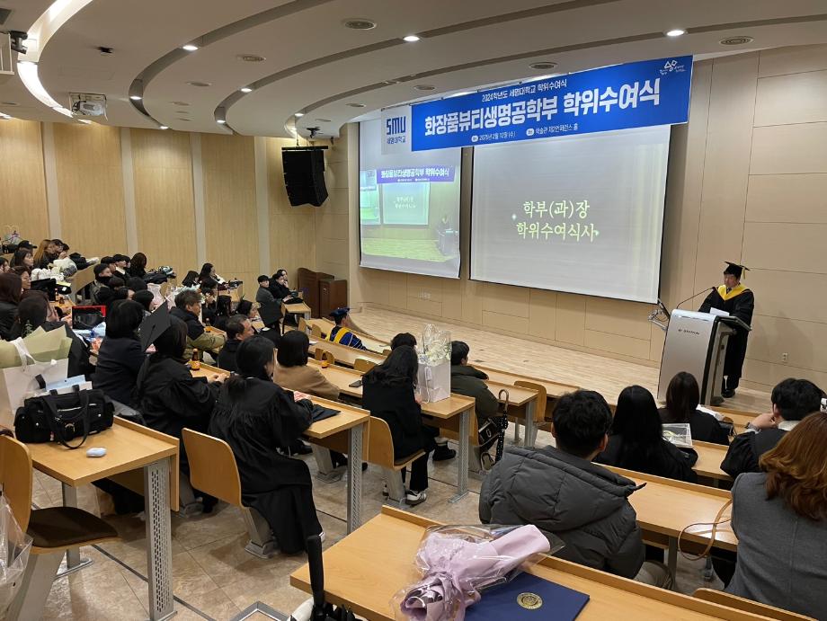 본문 시작 홈으로 커뮤니티 학과소개 학과과정 대학원 커뮤니티 연구동아리 홈페이지가이드 포토갤러리 학과공지 채용정보 학과일정 포토갤러리 유튜브 인스타그램 취업현황 학생회 조직도 졸업생 숏터뷰 포토갤러리 페이스북 트위터 프린트 2024학년도 전기 학위수여식 바이오코스메틱학과 1402 2025-02-17 2024학년도 전기 화장품 뷰티생명공학부 학위수여식을 2025년 2월12일 학술관 제 2컨퍼런스 홀에서 진행하였습니다. 학과수석 임지은 학생을 포함하여 뷰티생명공학전공 11명, 화장품과학전공 23명 이 날 총 졸업생 35명이 전공 학사 학위를 수여받았습니다. 목록 이전「지자체-대학 협력기반 지역혁신사업」제5회 프로젝트랩 캡스톤디자인 경진대회 최우수상 · 우수상 수상 다음 2024 전기 화장품과학과(대학원) 석사 학위수여식 담당부서 : 바이오코스메틱학과 담당자 : - 연락처 : 043-649-1638 최종수정일 : 2024-10-26 만족도조사 만족도 조사 이 페이지에서 제공하는 정보에 대하여 만족하시나요? 매우만족 만족 보통 불만족 매우불만족