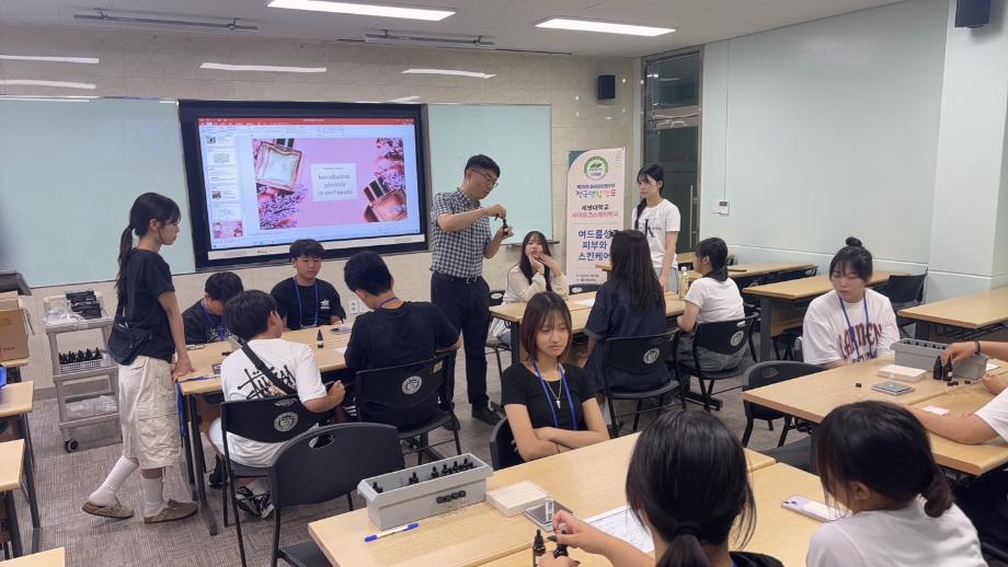 본문 시작 홈으로 커뮤니티 학과소개 학과과정 대학원 커뮤니티 연구동아리 홈페이지가이드 포토갤러리 학과공지 채용정보 학과일정 포토갤러리 유튜브 인스타그램 취업현황 학생회 조직도 졸업생 숏터뷰 포토갤러리 페이스북 트위터 프린트 2025학년도 파라미타 청소년 전국 연합캠프 학과체험 바이오코스메틱학과 773 2025-08-01 안녕하세요 바이오코스메틱학과입니다. 2025년 7월 23일 파라미타 청소년 전국연합캠프 학과체험을 진행하였습니다. 이날 바이오코스메틱학과에서는 피부측정 및 향수제조체험을 김용민교수님께서 지도하여 주셨습니다. 목록 이전대학 연계전공 입시박람회 다음 2025 자기설계 해외 배낭연수 바이오코스메틱학과 담당부서 : 바이오코스메틱학과 담당자 : - 연락처 : 043-649-1638 최종수정일 : 2024-10-26 만족도조사 만족도 조사 이 페이지에서 제공하는 정보에 대하여 만족하시나요? 매우만족 만족 보통 불만족 매우불만족