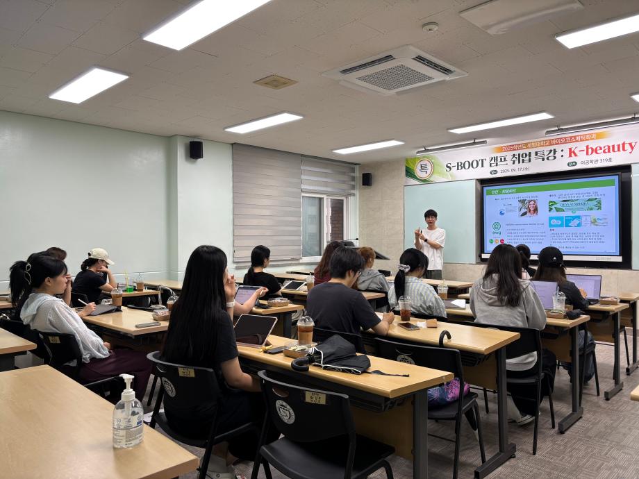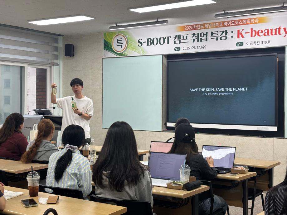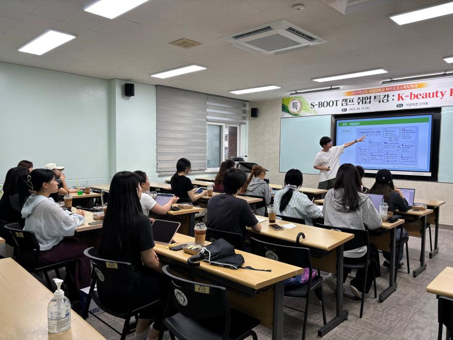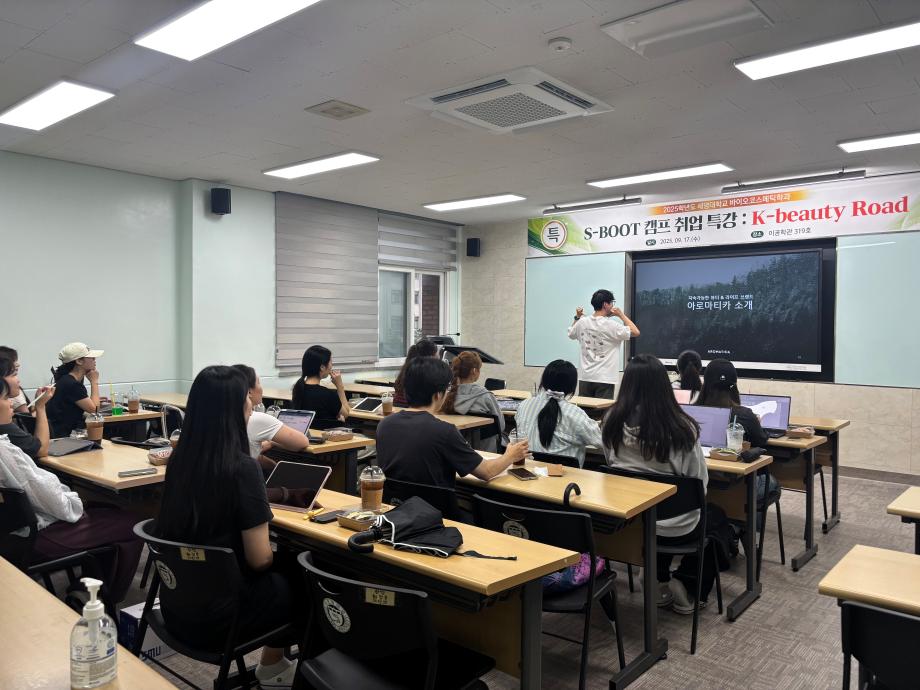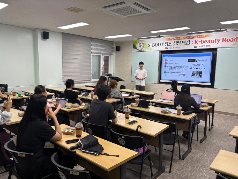 본문 시작 홈으로 커뮤니티 학과소개 학과과정 대학원 커뮤니티 연구동아리 홈페이지가이드 포토갤러리 학과공지 채용정보 학과일정 포토갤러리 유튜브 인스타그램 취업현황 학생회 조직도 졸업생 숏터뷰 포토갤러리 페이스북 트위터 프린트 2025학년도 1차 S-BOOT 특강_K-Beauty Road 바이오코스메틱학과 468 2025-10-13 2025학년도 1차 S-BOOT 특강을 진행하였습니다. 목록 이전2025학년도 1차 화장품생명공학세미나 다음 2025학년도 2차 화장품생명공학세미나 담당부서 : 바이오코스메틱학과 담당자 : - 연락처 : 043-649-1638 최종수정일 : 2024-10-26 만족도조사 만족도 조사 이 페이지에서 제공하는 정보에 대하여 만족하시나요? 매우만족 만족 보통 불만족 매우불만족