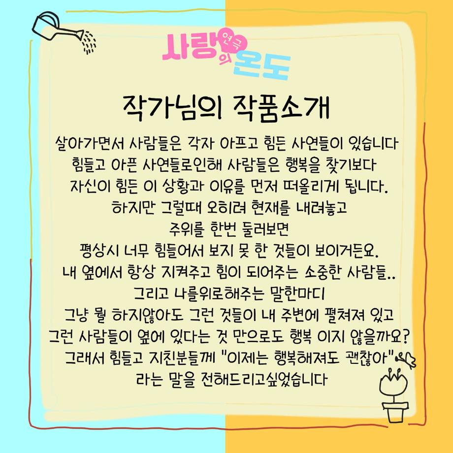 본문 시작 홈으로 커뮤니티 학과소개 입학정보 교수소개 학과과정 커뮤니티 공연예매 안내 홈페이지가이드 포토갤러리 공지사항 포토갤러리 작품DB 동아리 학사일정 학생회 포토갤러리 페이스북 트위터 프린트 117회 세명대학교 연기예술학과 하계프로젝트 사랑의온도 작품소개 연기예술학과 713 2025-08-21 . 목록 다음 ‘늘‘ 궁금한 이야기 - 현장실습 < 이종서 > 다음 117회 세명대학교 연기예술학과 하계프로젝트 사랑의 온도 스태프 소개 담당부서 : 연기예술학과 담당자 : - 연락처 : 043-649-1733 최종수정일 : 2024-10-26 만족도조사 만족도 조사 이 페이지에서 제공하는 정보에 대하여 만족하시나요? 매우만족 만족 보통 불만족 매우불만족