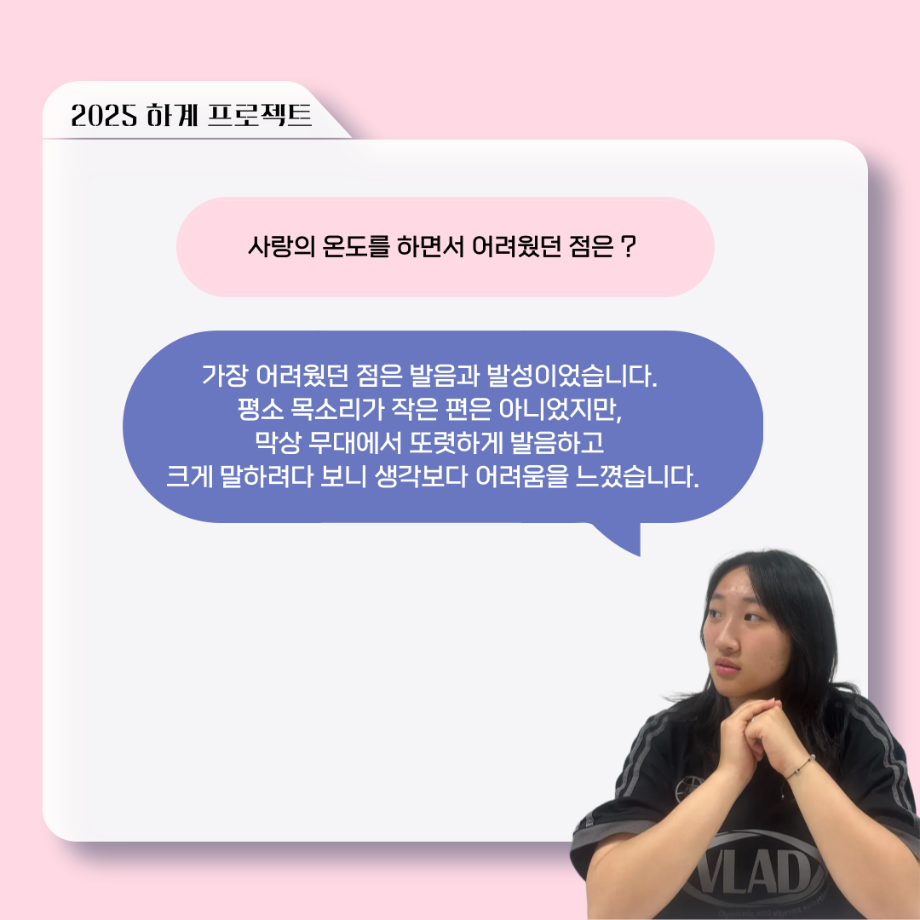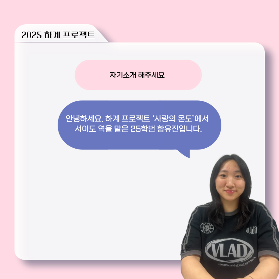 본문 시작 홈으로 커뮤니티 학과소개 입학정보 교수소개 학과과정 커뮤니티 공연예매 안내 홈페이지가이드 포토갤러리 공지사항 포토갤러리 작품DB 동아리 학사일정 학생회 포토갤러리 페이스북 트위터 프린트 ‘늘‘ 궁금한 이야기 - 하계 프로젝트 ‘사랑의 온도’팀 서이도役 < 함유진 > 연기예술학과 614 2025-11-10 . 목록 이전세명대학교 연기예술학과 과체전 다음 ‘늘‘ 궁금한 이야기 - 하계 프로젝트 ‘사랑의 온도’팀 주지환役 < 신승현 > 담당부서 : 연기예술학과 담당자 : - 연락처 : 043-649-1733 최종수정일 : 2024-10-26 만족도조사 만족도 조사 이 페이지에서 제공하는 정보에 대하여 만족하시나요? 매우만족 만족 보통 불만족 매우불만족