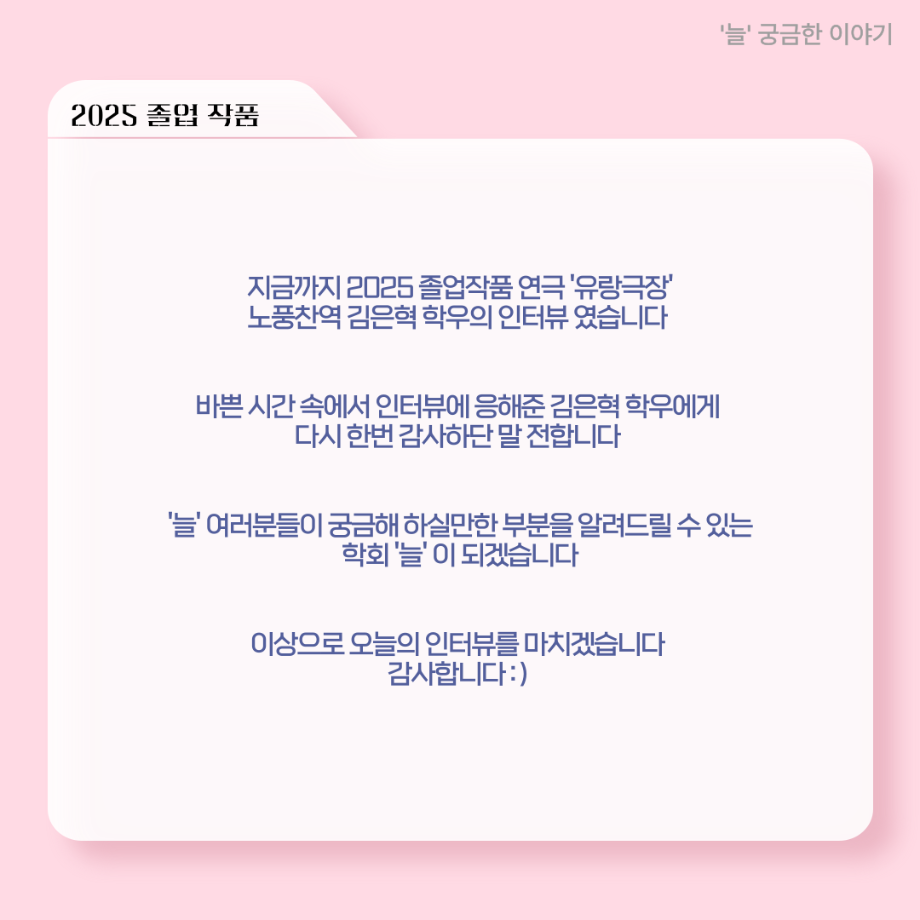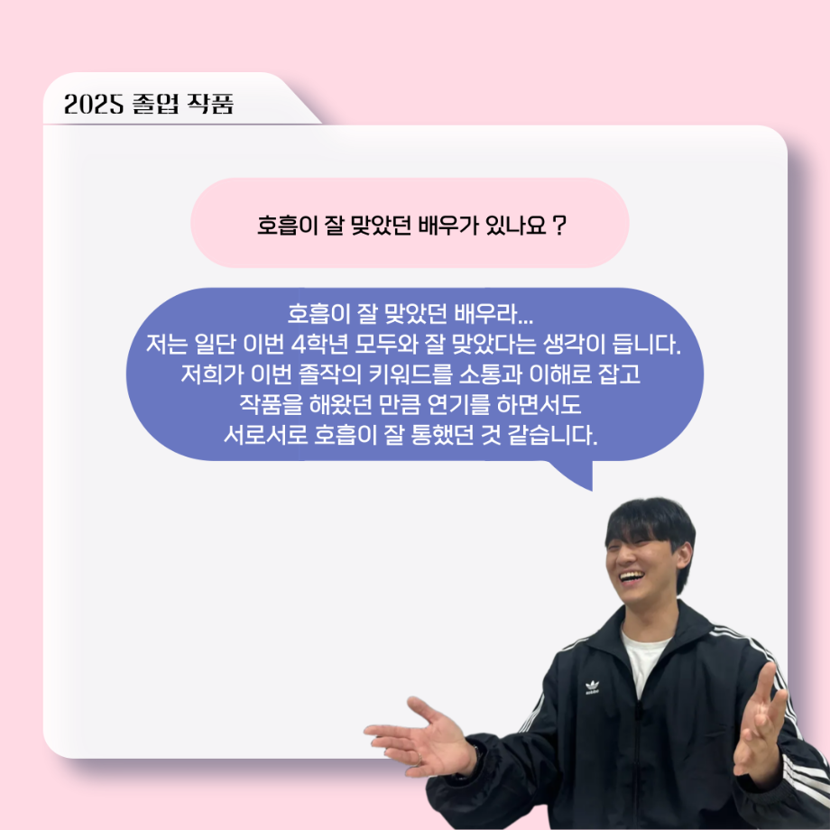 본문 시작 홈으로 커뮤니티 학과소개 입학정보 교수소개 학과과정 커뮤니티 공연예매 안내 홈페이지가이드 포토갤러리 공지사항 포토갤러리 작품DB 동아리 학사일정 학생회 포토갤러리 페이스북 트위터 프린트 ‘늘‘ 궁금한 이야기 - 2025 졸업작품 ‘유랑극장’ 노풍찬役 < 김은혁 > 연기예술학과 332 2025-12-05 . 목록 이전‘늘‘ 궁금한 이야기 - 하계 프로젝트 ‘사랑의 온도’팀 주지환役 < 신승현 > 담당부서 : 연기예술학과 담당자 : - 연락처 : 043-649-1733 최종수정일 : 2024-10-26 만족도조사 만족도 조사 이 페이지에서 제공하는 정보에 대하여 만족하시나요? 매우만족 만족 보통 불만족 매우불만족