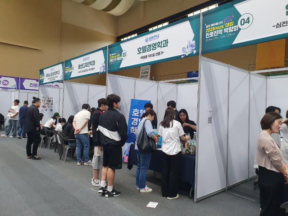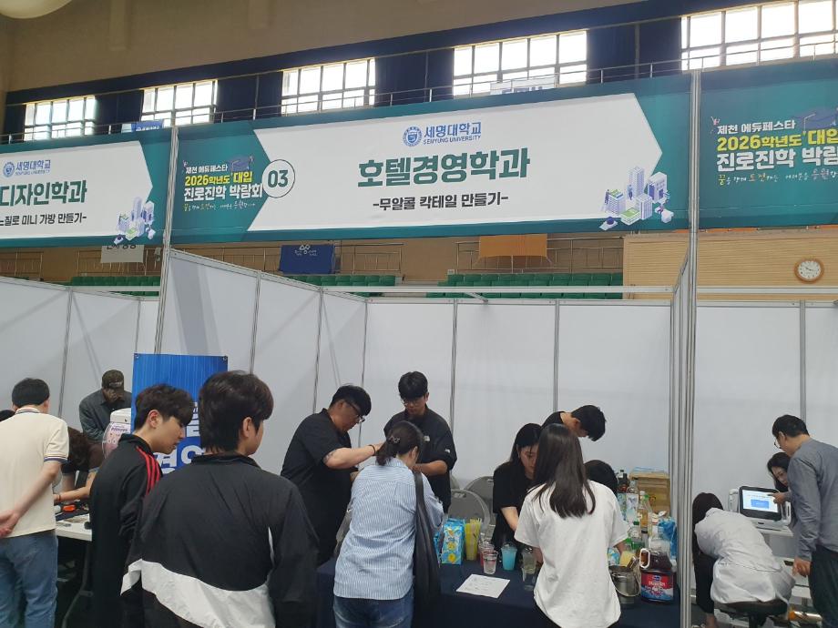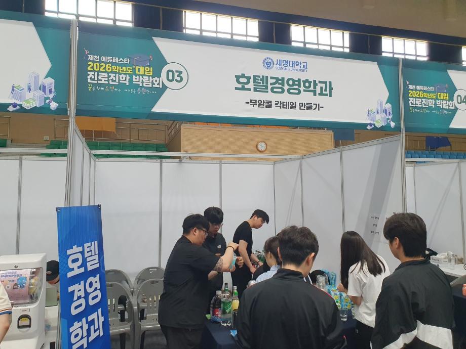 본문 시작 홈으로 학과소개 커뮤니티 학과소개 교육 홈페이지가이드 학과행사 학과장인사말 교수소개 학과행사 학과행사 페이스북 트위터 프린트 2026년 제천에듀페스타 대입진로진학 박람회_호텔경영학과 호텔경영학과 835 2025-06-16 2026년 제천에듀페스타 대입진로진학 박람회_호텔경영학과 목록 이전2025년 교직이수 학생 교생실습_한국호텔관광고등학교 다음 2025년 세명대학교 하계 교직원 워크숍 만족도조사 만족도 조사 이 페이지에서 제공하는 정보에 대하여 만족하시나요? 매우만족 만족 보통 불만족 매우불만족