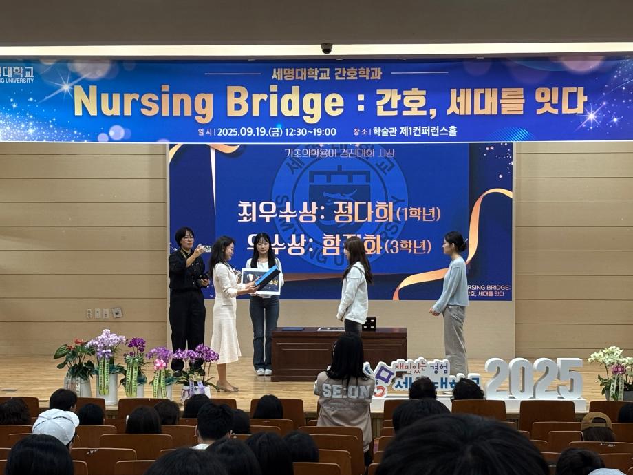 본문 시작 홈으로 학과특성화 사업 학과소개 교수소개 교육과정 학과소식 학과특성화 사업 커뮤니티 홈페이지가이드 2025년 2025년 2024년 2023년 2022년 2021년 2020년 2019년 2018년 2017년 2016년 2015년 2014년 2025년 페이스북 트위터 프린트 🎉 세명대학교 간호학과 30주년 기념행사 🎉 Nursing Bridge: 간호, 세대를 잇다 간호학과 298 2025-09-24 세명대학교 간호학과가 개설 30주년을 맞아, 지난 세월의 발자취를 돌아보고 미래 간호를 함께 그려보는 뜻깊은 시간을 가졌습니다. 이번 행사에는 권동현 총장님, 신경림 대한간호협회장님, 정승교 명예교수님을 비롯해, 수많은 졸업생과 내외빈 여러분이 함께해 자리를 빛내주셨습니다. 과거와 현재, 그리고 미래의 간호를 잇는 ‘Nursing Bridge’ 그 감동의 순간들을 공유드립니다. 목록 이전핵심간호술 졸업인증제 프로그램 다음 2025학년도 기초실습역량향상프로그램 (카데바 실습) 담당부서 : 간호학과 담당자 : - 연락처 : 043-649-1357 최종수정일 : 2024-10-26 만족도조사 만족도 조사 이 페이지에서 제공하는 정보에 대하여 만족하시나요? 매우만족 만족 보통 불만족 매우불만족