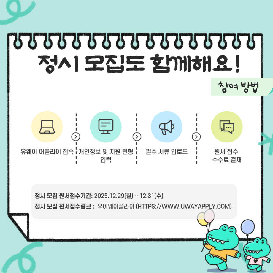 입시생을 위한 링크서비스 입학안내 수시모집 정시모집 편입학 Q&A 학과안내 성적자동산출 입시자료신청 대학소개 장학제도 >학생생활관(기숙사) >찾아오시는길 캠퍼스투어 >국제교류 >학군단(ROTC) >통학버스 입시생 레이어 닫기